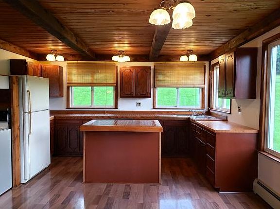 Stunning setting this 55.98 acre farm home has many updates! The whole second floor has been updated to include the full bath. Newer roof and windows. The large eat in kitchen opens up to the step down family room with wood stove. The sliders take you to the decking area perfect to enjoy your country views! This property is on both sides of Horan and it has a newer barn and two ponds!
