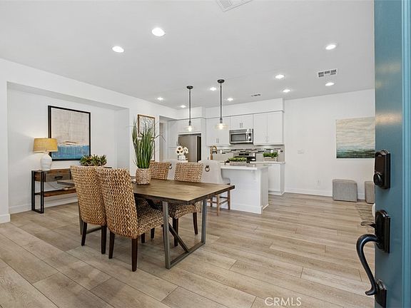 Welcome to this stunning Lyon Villas home, offering an ideal floorplan with 3 bedrooms, 2.5 baths, and a versatile loft. The inviting front porch overlooks a lush greenbelt, setting the tone for this beautifully designed residence. Step inside to a bright and open living space, where the kitchen, dining, and family room seamlessly connect. The gourmet kitchen boasts a large quartz island with pendant lighting, upgraded appliances, and fixtures, plus island seating—perfect for entertaining. The dining area flows into the spacious family room, which opens to your private covered patio featuring recessed lighting, making it an ideal spot for indoor-outdoor living. The main floor also includes a guest bath and direct access to a 2-car garage with overhead storage. Upstairs, the loft offers a perfect home office or additional living space. Two spacious secondary bedrooms feature ceiling fans and window shutters, sharing a well-appointed bathroom with a tub and shower. The conveniently located laundry room includes ample cabinetry for storage. The luxurious primary suite is a true retreat, complete with a ceiling fan, large walk-in closet, and a sitting area. The en-suite bathroom features dual sinks and a walk-in shower. Upgraded plank flooring, brand new carpet, window shutters. Overall, the floorplan offers a balanced mix of functionality and luxury, with a thoughtful layout that maximizes both private and shared spaces. Enjoy the incredible amenities of the whole Rancho Mission Viejo community, including The Outpost pool, spa, and a full bar open on weekends—perfect for a resort-style lifestyle. Resort-Style Pools and Spas, Firepits, Bocce Ball Courts, Fitness Centers, Community Farm, Tennis and Pickleball Courts, Coffee Shop, Playgrounds, and so much more, so don’t miss the opportunity to make this exceptional home yours!