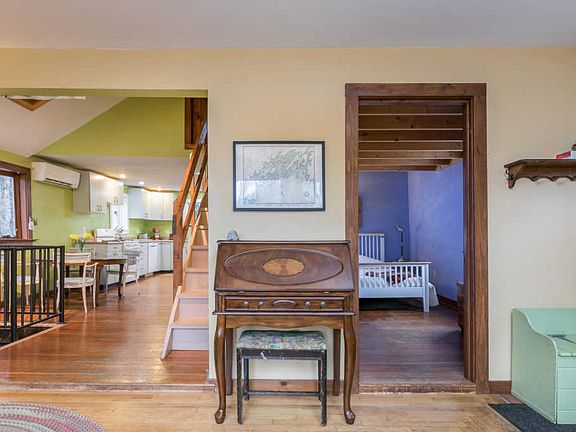 Rich with possibility! Close to Freeport village and still in a country setting. Come see this 2 bedroom cape, privately situated on 2 acres. Watch wildlife right off your deck or raise your own on this flat parcel with 3 outbuildings including a chicken coop. The first floor is flooded with light and features a bedroom and full bath, cathedral ceiling, wood floors, and wood stove. Another bedroom fills the second floor space and with cool angles, storage, and flexible space to use however suits your needs best. The daylight basement features extra family room, storage space, and three-quarter bath. Property sits along old Reed Road, which is a trail that leads to Hedgehog mountain & it's trail system.Open house Sunday, December 22 from 10am-Noon.