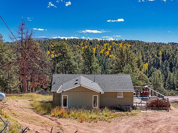 Remodeled! Want a cozy place with amazing views of the Sangre de Cristo's, Pike's Peak and the surrounding area? This mountain property has that feel of seclusion yet close to Woodland Park and all the amenities of modern life. Home has new flooring and paint throughout; new shower, new window, new toilet and shelving in the bathroom; new shelving in the closet; kitchen has new lighting, painted cabinets, sink faucet, backsplash and stove; French doors installed in the bedroom that open onto a small deck; fire-resistant wall covering behind the wood stove has been installed; a ramp on back side of house from the deck to a fenced area; risers added to the septic tank; hot and cold water spigot added to exterior of the house; gate installed on deck and a new 10x10 shed. This property is located in the community of Colorado Mountain Estates, which spans approximately 2,000 acres and backs up to Mueller State Park. And just minutes away is the Florissant Fossil Beds National Monument.