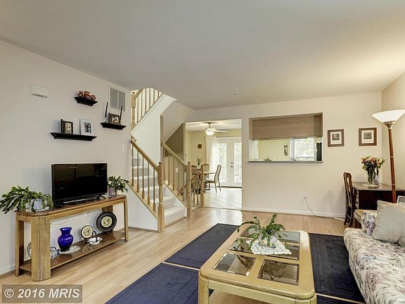Superior location backing to secluded wooded view. Huge deck with stairs leading to fenced yard and patio. Bright, open floorplan featuring kitchen with breakfast room and separate living room/dining room area. Master BR w/ vaulted ceiling & huge closet. Cedar closet in LL. Walk out to patio from carpeted fam rm. Gas heat. Adorable front porch. Home warranty included. Make this THS your home.