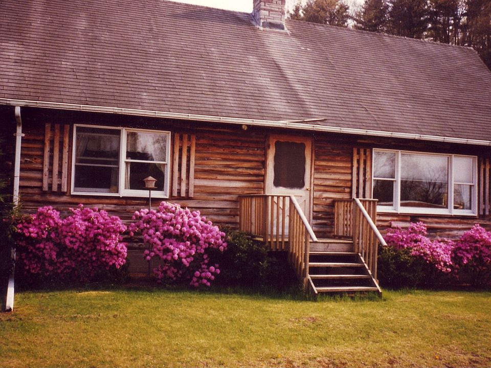Charming Maine style log home in an idyllic country setting. First floor features eat-in kitchen, two bedrooms, full bath and living room with beautiful stone fireplace. Second floor has a lofted area ideal for reading and another room that would make a great third bedroom. Full basement with wood stove that supplements the propane hot air heat. Central Air. Separate 36 x 42 heated workshop with electric and plumbing complete this package. All on 4+ acres.