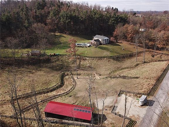 If you are looking for privacy, a farm, or place to keep your horses get excited about this 21 acre slice of earth's pie! As soon as you drive up the tree-lined stamped concrete driveway you'll feel at home. Enjoy 7 acres of fenced pasture with a 6-stall solar powered barn. Inside you'll love fantastic details like hardwood floors, crown molding, rustic beams and brick fireplaces. Large rooms allow for great entertaining. The kitchen has tons of cabinet space and high-end appliances. The owner's suite has 3 closets and a private bath. In the lower level you will find an additional bedroom, a game room, a large storage area and a partially finished area for whatever you need! You'll also love the cedar lined closet and the full bath. Outside it just keeps getting better?with a covered patio, a detached garage with a heated dog house, an in-ground pool, 4 to 5 acres of cleared grounds, a large pond, fruit trees and 10 acres of woods with trails for riding quads or horses! Only 4 miles off I-79 and 10 minutes to Washington means it only feels miles away!