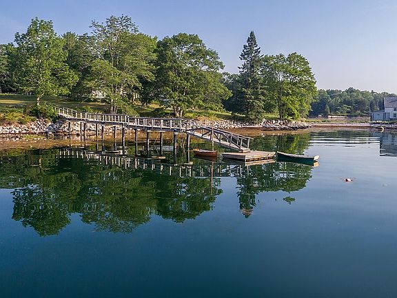 This historic saltwater farm is ideally located on the protected waters of Jones Cove with southerly views to the Atlantic Ocean. The 7.8±-acre property encompasses rolling fields, mature forest, 1,800± feet of water frontage with a beach, deep-water pier for boating needs and a 100' stone pier with a boathouse at the water's edge. The 4-bedroom home with attached 3-story barn enjoys elevated views over the fields to the anchorage. There is also a separate 3-story carriage house for cars/storage possible studio and horses. Minutes from Christmas Cove and the numerous amenities of nearby coastal villages.