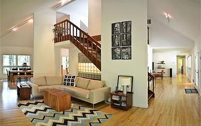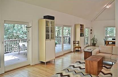 This home is a sophisticated European style contemporary with open living space, soaring cathedral ceilings, large bright rooms and a deck along the side. The European designed gourmet kitchen has quarter-sawn maple cabinets, glass breakfast bar countertop and Gaggenau and Subzero appliances. The master bedroom boasts a Japanese soaking tub, glass vessel sinks and counter top, steam shower, and separate commode and bidet. In addition, the master bedroom has a fireplace, a walk-in closet and balcony. Within this home most blinds/shades are operated by remote control, there is a security system, an intercom system, a built-in washer/dryer, recessed lighting, hardwood floors and many closets. This is a must see!