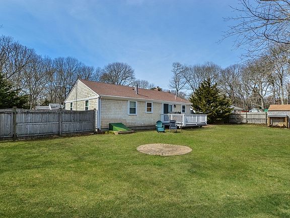 Welcome to this completely renovated 3-BD, 2-BA ranch, just 1.3 miles from two pristine beaches & offers the perfect blend of modern comfort and charming seaside living. You will find gleaming hardwood floors throughout the open & inviting living space, highlighted by a cozy wood-burning fireplace & abundant natural light. The bright & airy living room flows seamlessly into the dining area, where sliding glass doors lead to a large deck and an expansive, private fenced-in backyard - ideal for outdoor entertaining. The heart of the home is the beautifully updated kitchen, featuring cherry cabinets & ample space for meal preparation. Both full bathrooms have been tastefully remodeled with tile floors and stylish vanities, including a private ensuite in the master bedroom. Additional highlights include central AC for year-round comfort, a full basement with plenty of storage space, and an outdoor shower and firepit area for enjoying Cape Cod's beautiful weather.
