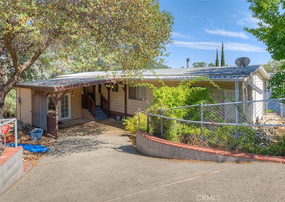 MH in Kelly Ridge, ENJOY LAKE LIFESTYLE !! Is this your next PROJECT!?? This property has such possibilities! Recorded 433A foundation. Enter up stairs right under carport, or thru gate to ramp, which leads up to wood porch, & covered back deck. Inside you will find a great floorplan: Living room, picture windows, w/formal dining area & built-in buffet! Lots of display & storage space! Middle of house find the original kitchen, lots of counter space, & cabinet storage, a huge double door pantry, counter top elec stove, & separate double ovens, dishwasher, refrigerator... The Breakfast counter shares the family room, which has a freestanding wood stove. Next, the original laundry room, w/entry into Jack & Jill upgraded bathroom, shared w/the 2nd bedroom. That bedroom has French doors off the family room, large closet. The large bedroom has sizable closets & built-in drawers, adjoining bathroom has tub & separate shower. Laminate flooring thru-out, vinyl in kitchen, laundry & baths. There is a storage/bonus area at back of carport, with French door entry, laundry hook-ups now there, & seller used as an Art Studio in the past. A level parking space at top of drive, above carport area. Outside find oak trees, natural landscape. Small area behind cyclone gate for your garden ideas!! Most affordable water service around: South Feather Water & Power(SFWP) !!!! CASH ONLY SALE, bring your tools, $$, & your creativity! Call your favorite REALTOR/Agent to make an appt to see !!