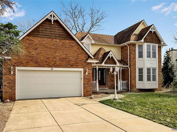 MUST SEE!!! SPACIOUS & beautifully appointed brick-front luxury Colonial in East Amherst; move-in ready with incredible Williamsville schools. Featuring an attractive eat-in kitchen w/custom white cabinetry, Granite counters, tile backsplash, breakfast bar & stunning LVT flooring opening to the expansive family room with cathedral ceilings accented by an exposed wood beam, brick-faced, wood-burning fireplace, and an abundance of natural light. Enjoy the abundance of space in the formal dining room and living room with crown molding throughout. The charming primary suite has vaulted ceilings & a large bay window with sitting bench, as well as a full bathrm w/dual vanities and glass-enclosed, stand-up shower. The serene & fully fenced backyard oasis is accentuated by the covered back deck and hot tub, perfect for sipping your morning coffee & summer soirees and the 2.5 car attached garage makes for ease of living. Impeccably kept w/choice finishes, this picturesque home has many updates inclu landscaping 2023, high-eff furnace 2018, newer A/C, windows & a distinctive front door resting in a peaceful development ideally situated near the amenities of Transit Road!