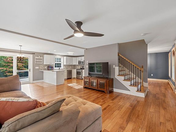 Near Rochester town line, close to Dover, 30 minutes to Portsmouth, close to Rt.16/Rt 11 and shopping. This beautiful colonial 3 bed 3 bath home sits on a private lot abutting over 200 acres of conservation land in a desirable neighborhood in Farmington. From the spacious farmer’s porch, step into this well-maintained home with large living room, a dining/kitchen area, bright updated kitchen with quartz counters, with newer stainless-steel appliances. There is a formal dining room for quiet dinners, entertaining, or use as an office or additional living space. First floor laundry. Upstairs features a large primary bedroom with walk-in closet and an updated ensuite bath with a new large, tiled shower. There are 2 additional spacious bedrooms and a full bath. The house sits back from the road for privacy. The backyard has a large deck for grilling and entertaining. An invisible dog fence is installed on the perimeter of the property. Roomy 2 car garage, full dry basement for your storage needs. Lots of updates including new on-demand hot water and heating system, with smart thermostats, new water filtration system, and new septic.