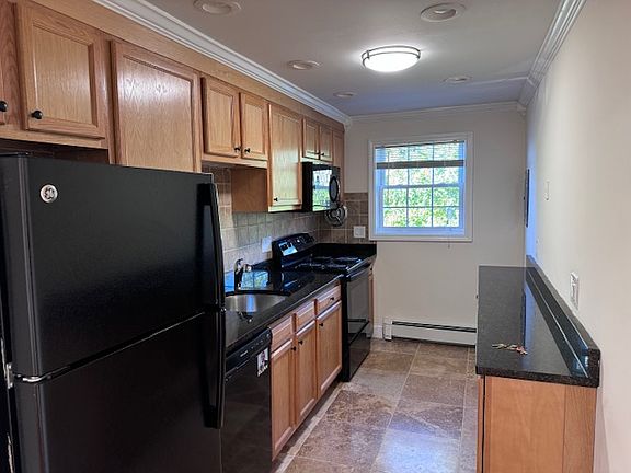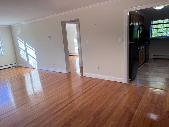 Great deal for a 1 bedroom 1 bathroom apartment in an amazing location - right across the street from Horn Pond, and also close to downtown Woburn, rt 93 and rt 95. The kitchen and bathroom have been recently redone and are very modern. The apartment has hardwood floors throughout, laundry in the basement, and one off-street parking spot included. Heat and hot water are included. Tenants pay for electricity. The upfront costs are the first month, last month, $81 key fee and the broker fee is equal to one month's rent.