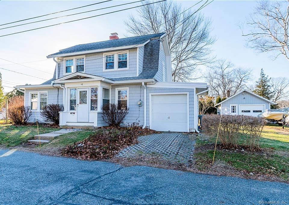 Looking for a convenient location in downtown Niantic just a few blocks from the water and the main street? This 2 bedroom home is situated on a corner lot with a detached one plus car garage allowing for workshop area or additional storage space. The oversized living room offers hardwood flooring and the original beach stone fireplace with mantel. Just off the living room is a heated sunroom ideal for plants or just soaking up the sunshine. Rounding out the main floor is the kitchen complete with appliances and a breakfast nook/dining area. Originally a 3 bedroom home, the large master with double closets, second bedroom and a full bath complete the top floor. Bring your ideas and possibly turn the area over the attached garage into additional outdoor space or add on an extra bedroom, the door is already there. Plenty of room and sunshine for gardening in the backyard. The seller says the neighbors are awesome! Come see for yourself.