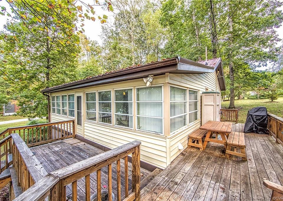 Escape the pandemic and enjoy lake living all year round boating, fishing, swimming, or just relaxing with friends in your private getaway on the 200 acre Trice's Lake. This wonderful ranch style home offers some of the best views of the lake. Situated on 3 and 1/2 lots and directly across the street from the beach and lake access its like being waterfront without the price. Features include two large bedrooms with a full bath, a spacious ktichen with gas cooking and NEW refrigerator, a large family room, and spacious sunroom with awesome lake views. There is a wonderful deck that is perfect for hanging out and dining al fresco and a basement that offers endless possibilities. Three sheds, NEW ROOF, NEWER HVAC, NEW Storm Doors, Vinyl Windows, upgraded electrical....the big stuff is done and its just waiting for your own touches. The Association offers two beaches with swim areas, trash removal, a clubhouse with active social calendar, security and lake maintenence. The lake is loaded with great fishing opportunities, including large and small mouth bass, crappy. Your chance to own affordable waterview property, within an hour of Richmond and Charlottesville is finally here!