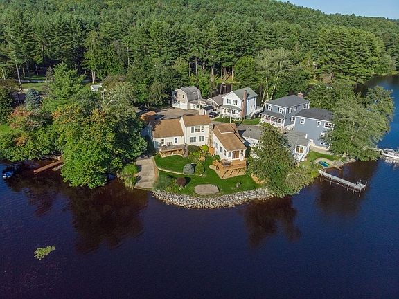 Welcome to this lovely home that is situated on 168 feet of waterfront along Sugden Reservoir, a full recreational lake! Boasting a huge cabinet packed kitchen with granite counters and center island and bar overlooking a beautifully landscaped lot. The kitchen, main bedroom, second deck and two car garage were added on to the sweet cottage in 2005, making it just spectacular for entertaining all year long. Stone wall fireplace is decorative (it was sealed off), hardwood flooring, sliders to deck, two covered front porches and first floor laundry add to the convenient layout of this home which is located at the end of a dead-end road,.One of the rare properties that also has a boat ramp, perfect to drop in pontoon boat! The half bath in LL and mini splits are listed but are currently not functioning. There are two 1500 gallon tight tanks the seller pumps every 5 months at a total of $500 ($250 for each). Seller does not pay flood insurance.
