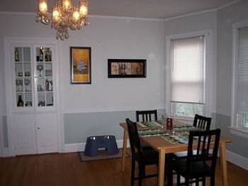 Second Floor in 3-Family House. Two bedroom / 1 Bath. Hardwood Floors throughout, eat-in Kitchen with vinyl flooring. Nice size tiled bathroom - updated fixtures. Fireplaced Living Room, Dining Room with Built-Ins. Washer/Dryer on site. 1 Car Parking / Possibly 2. Quiet Street. Utilities not included: Oil Heat / Gas Hot Water / Electriciy / Cable. Pets accepted on a case by case basis.