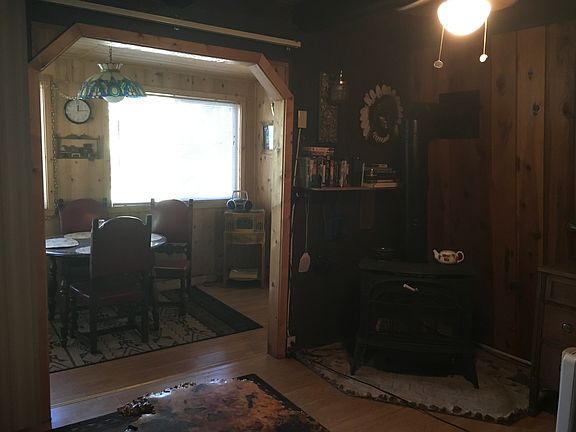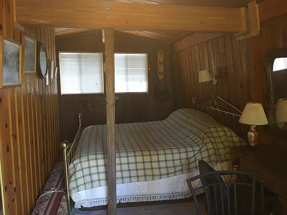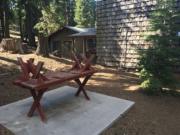 Rustic mountain cabin on three acres at 6000 foot elivation,fsurrounded by national forrest, fully furnished, one bedroom upstairs with sliding glass door to 14 x 7 deck, garage with an additional guest room (bunk house) also furnished. Fully lit horseshoe pit just off of the back porch with concrete slab BBQ area and picnic table. Septic, well and electric, just 200 feet off of county maintained road. This house is located in Modoc County California, the north east corner of California, elevation is 6000 feet.
