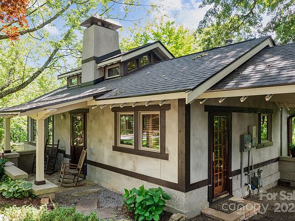 'One of a Kind 3/2 Arts & Crafts home.' Walk to Dining, UNCA & Botanical Gardens; Bus Stop 1 block. Kitchen has new SS appliances & pantry. The living room/dining room area opens onto a beautiful stone terrace that meanders through the yard. The light-filled gallery hallway also opens to the terrace. A New Roof & several heat sources; Radiant Floor Heat (concrete floor) in main living areas, New Heat Pump, & gas log fireplace in the living room. Bedrooms all have hardwood flooring & beautiful window treatments that match the rest of the home. The spacious primary bedroom has a large walk-in closet & an en-suite bath with ceramic tile flooring; 'An Oasis' after a long day, with a large jetted soaking tub as well as a tile shower. Outside you will discover a Beautiful & Private Yard with various types of trees, plants & rock gardens; a Very Zen Experience to sit on the back yard swing & relax. There is also a 350 sf finished/heated daylight basement for crafting, game room, storage, etc.