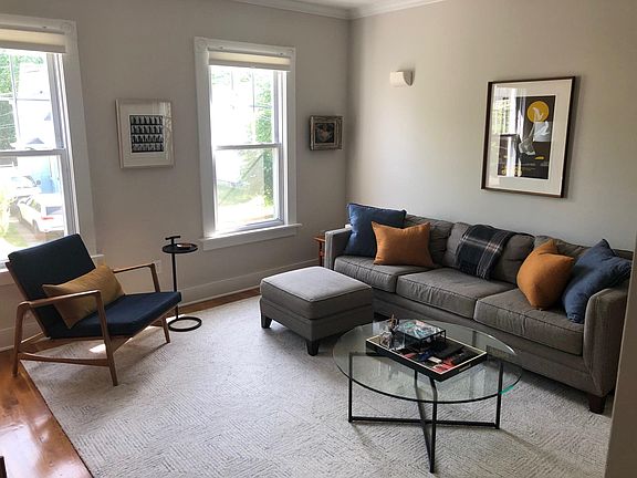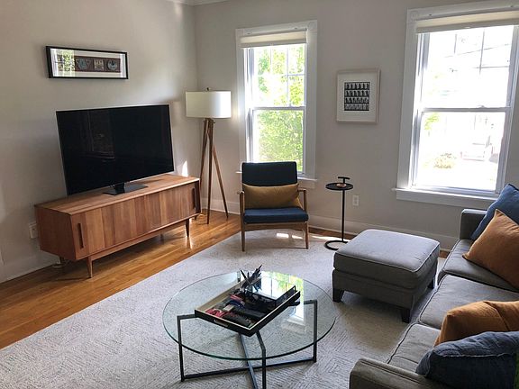 Modernized, airy 3 bedroom unit in the top two stories of a two-family house with deck, screened-in porch and fenced back yard. Located on a quiet East Rock street in the Worthington Hooker school district. 15-minute walk to Yale. Perfect for a family. *Starting lease date flexible 7/15-8/15 *No pets please *Central heating and air conditioning; hardwood floors in kitchen, living and dining room; ceiling fans in all bedrooms. *Small downstairs bathroom with bathtub; larger bathroom upstairs with large tiled shower. *Washer, dryer and storage in basement *Easy walking distance to many neighborhood shops and restaurants. *Lovely views of East Rock from master bedroom *Tenants pay gas and electricity (house is well-insulated and updated so utilities are reasonable). *Ample street parking