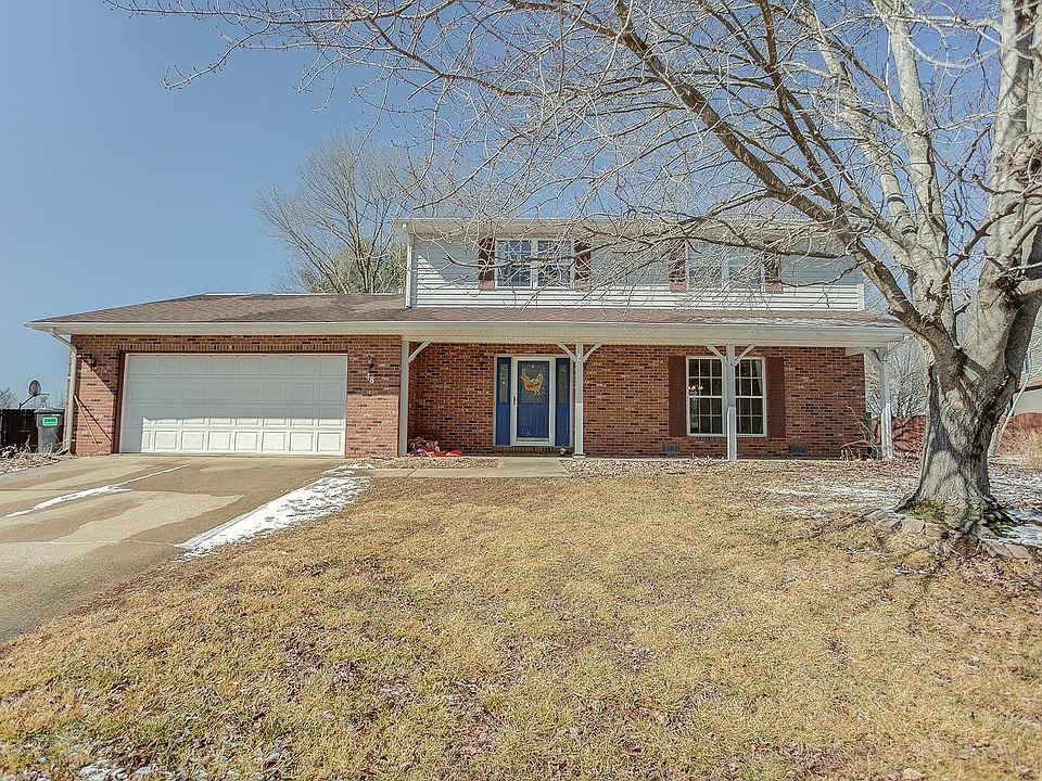 Looking for a roomy, updated home w/ fenced backyard in the sought-after Wolfbranch school district? This could be the ONE! Pull up & notice the big, covered front porch for greeting your friends & family; enter to admire the new LVP flooring('21) & like-new carpet('19) thruout. Wonderful natural light in the Large Living Rm & adjacent Dining Rm/Play Rm/Ofc/Flex Rm...whatever your needs! Kitchen has been updated to incl. new counters, sink, faucet & disposal('21). Eat-in Kitchen has pantry, island & S/S Appliance Pkg. that stays!! Family Rm has a beautiful brick FP w/ Gas insert & built-in Bookshelves/Cabinet. Hall Guest Bath w/ Linen closet & new Toilet & a Laundry Closet too. Upstairs is roomy & features the Primary Bedroom w/ Private, Full Bath(new LVP floors) & Walk-in Closet. 3 more Big Bedrooms; one w/ 2 closets & Full Hall Bath(new showerhead). 2-Car Garage, HVAC-'20, WATER HEATER-'20, WATER SOFT.-'20; electrical & plumbing upgrades too. Shed & Playset stay & chickens welcome!!