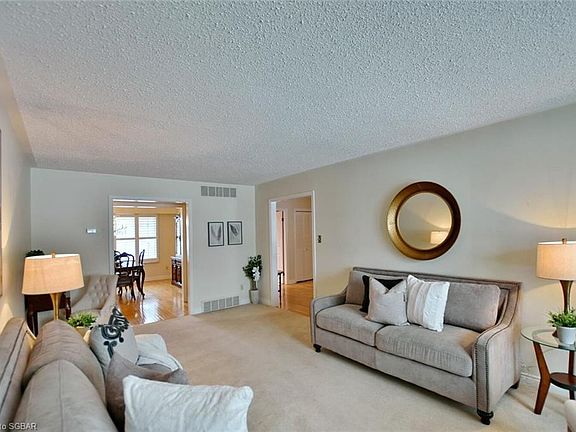 Vacant and Easy To Show! Well maintained, all brick home, on a large lot. Lockhart Subdivision the premier location to live, work and enjoy four season recreation! Ski, hike, and cycle nearby trails, enjoy the park and tennis courts, right across the street. Conveniently located near schools, Blue Mountain and downtown Collingwood shops and restaurants. Nicely landscaped gardens. Double Paved driveway with a single garage with inside entry to mud/laundry room. The living and dining rooms are bright with plenty of natural light. Kitchen walk-out to the back deck great for entertaining. Three bedrooms, with two bathrooms. Full basement with, large family room, bathroom, and additional side entrance offers many exciting opportunities there plenty of space to create an in-law suite, home office or extra bedrooms. As charming as they come, a rare opportunity! Retired and looking for comfortable home, great for a family, or a vacation property. See Documents for floor plans.