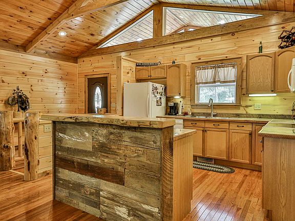 This cabin has been completely redone. The upgrades made since the initial construction are impressive. Ready to move in. There are a number of custom features that should be seen in person to truly appreciate. The lower level could be a Mother-In-Law area or an office/den. Location is easy to get to and yet it has a country feeling. The wide open main level has split bedroom layout to give you privacy. You will love the covered deck, circular drive & space to park. There is a NEW A/C unit. Although my mail address is Mineral Bluff- I am Closer to Blue Ridge. Space to park your RV or Boat. Gated community. Seasonal View. Nearby Toccoa River, Lake Blue Ridge & Golf for you to enjoy. The wood craftsmanship is outstanding.