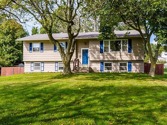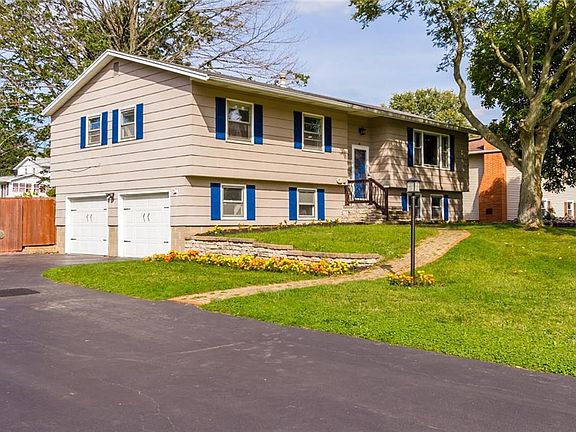 Move in Ready! Stunning open concept three bedroom raised ranch with two separate living spaces in Webster Schools! Featuring refinished hardwoods and fresh paint throughout! A modern, eat-in kitchen designed by Inde houses stainless steel appliances with beautiful backsplash, gas range & microwave built into island! Ample cabinet space and quartz countertops! Sliding glass door opens to deck that overlooks the nearly half acre private & fully fenced yard! Perfect for entertaining! The full & finished walk out basement houses a full bath, laundry & garage door entry. First level houses three large bedrooms and full bath. This home has new mechanics! H20 Tank ONLY 1 year old! Furnace & A/C only 5 years old! Home meticulously kept up and is a fantastic space for entertaining!Delayed Negotiations until Sunday 9/29 at 6pm.