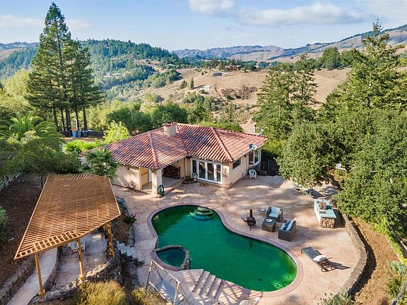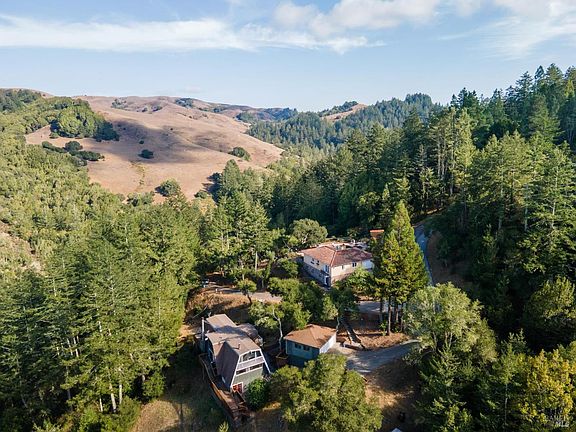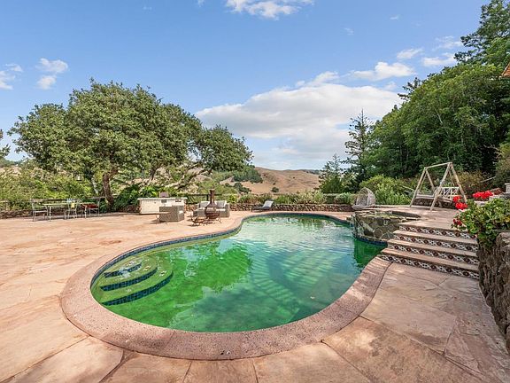 Where serenity and nature converge, two gorgeous homes grace 8.5 sun-filled acres of picturesque land. The 3BR/2BA Summer House, built in 1987, enjoys peaceful panoramic views, glorious sunrises and sunsets, and opens to an expansive patio and sparkling pool. The 4BR/3BA Mountain Home, with Anderson doors and an adjoining studio downstairs, stands majestically on the property where you'll also find a horse corral, tree swing, zipline, and private hiking trails. Together, they create the perfect lifestyle for relaxation, entertaining, or multi-generational living. Plenty of parking, 2-car garage & 1-car. This rare, private end-of-road compound is a true West Marin jewel just 36 minutes from the Golden Gate Bridge. With fiber optic internet, breathtaking views of rolling hills and open skies frame a lifestyle of tranquility and connection to nature. Sun-drenched outdoor spaces invite hiking, horseback riding, gardening, recreation, or simply unwinding in peace. Whether envisioned as a weekend retreat, year-round residence, or potential legacy estate, 48 Los Pinos Spur delivers unmatched privacy, seclusion, and natural beauty in one of Marin's most coveted locations. Just 6.7 miles to 101. Potential for improvement. Appraised for $1.664 Feb 2022.