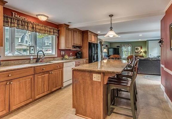 Updated and expanded full shed dormer cape in top neighborhood situated on large half acre lot. Family room addition with recessed lights, beamed ceilings along with 2nd floor master bedroom suite addition (23x15) with sitting room or office, oak hardwood floors and walk in closet. Updated kitchen (2002) with red birch cabinets and granite counters. Both full baths remodeled in 2010 and 2011. Dining room with wainscoting, walk in pantry with french door. Overlook the neighborhood on the 23x15 ft wooden deck above the garage. Huge back yard ideal for entertaining features masonry paver 31x18 ft patio, asphalt 40x30 ft sports court for basketball, tennis, big wheels etc.., 20 foot above ground pool and storage shed. Updated circuit breaker panel (2002). Weil McLain Gold 4 zone heating system (2006).