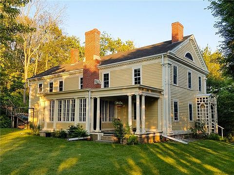 Spectacular New England Colonial exudes history with every detail. Remodeled gourmet kitchen with maple cabinetry, high end appliances and Italian porcelain tile. Hardwoods floors throughout and original, ornate detailed woodwork. Pella tilt-in thermopane windows. 4 fireplaces found in dining room, living room, conservatory and sitting room. Conservatory looks out over yard. Above ground pool and gardens. Two driveways makes for easw of accessibility. A beautiful home, and carriage house foundation offers many home business opportunities.