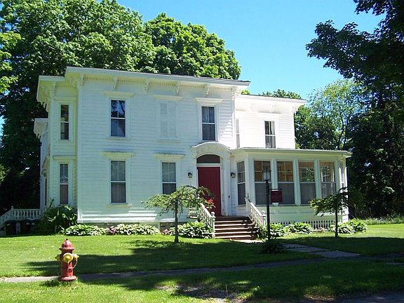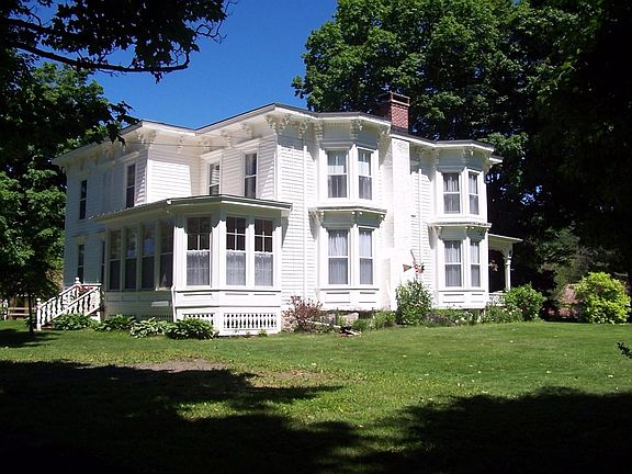 A rare opportunity to own a piece of Cherry Valley history. Uplawn, a gracious Victorian home, was built as a summer retreat in 1862, and served as an ideal setting for Leonard Dakin as he pioneered and perfected stop-action photography. Featured in the book, The Happy Valley, this warm, spacious home, with its six bedrooms and four baths, has plenty of room for family and friends to gather. If you've always wanted to be the proprietor of your own B&B, Uplawn is ready and waiting! Close to Cooperstown, Route 20, and Sharon Springs, it sits on a 1.1 acre quiet corner lot. Original chestnut doors and wide mouldings, high ceilings, hardwood floors, and deep bay windows accent throughout. The carved, double-door entry welcomes you in. To the left is a cozy family room/parlor. To the right is the living room,with maple/cherry floors, fireplace, bright bay window, and french doors that lead to a lovely, warm sunroom. Additional french doors are found in the dining room, and open to one of the side porches. Maple floors, a bay window, and 10' ceilings are found in the spacious dining room, with an adjacent butler's pantry. The eat-in kitchen boasts dramatic, glass-fronted cabinetry, a tin back-splash, maple floor, and stainless appliances. The office/library has its own private entrance, a maple floor, and floor to ceiling bookcases. A charming bedroom with attached bath completes the first floor. The master bedroom, at the top of the stairs, is big and bright with a bay window, attached bath with double sink and a claw-foot tub, and a walk-in closet with a wall of chestnut built-ins! The third bedroom has floor to ceiling windows and its own attached bath. The fourth bedroom is bright and airy, with another big bay window. The fifth bedroom is currently being used as an upstairs family room. A smaller sixth bedroom is serving as a game room/workout area. A huge laundry/craft room finishes the second floor. Plenty of space for the washer/dryer/stand-up sink, as well as a built-in ironing board.An additional staircase leads out from the second floor to another private entrance. With their own private entrances and meters, the first floor office, bed/bath, parlor and/or the second floor laundry, bed/bath,family room, can easily be converted to mother-in-law or income producing apartments. (As they were in the recent past.) The basement is huge and dry, with plenty of room for storage. Uplawn: character, charm, and history. All you could want in a home.