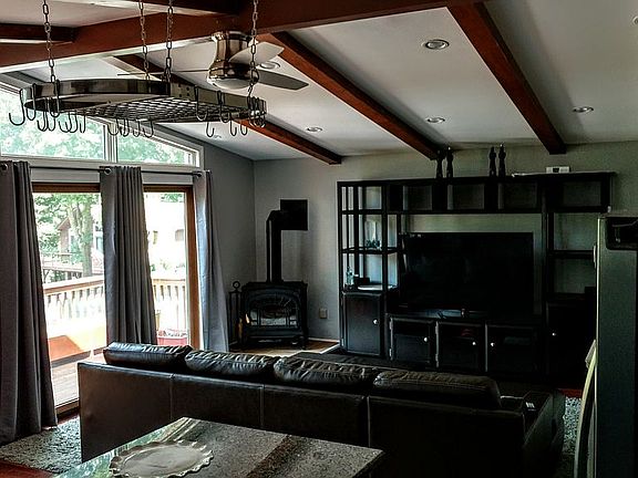 ***1040sq-ft*** 3 bedroom chalet style home situated on a secluded cul-de-sac in Solitude Village. Open floor plan, vaulted and beamed ceilings, large living room with a free standing propane stove; updated kitchen with center Island and electric cooktop; granite countertop and stainless appliances. Updated bathroom. Lower level with gathering room and office with 2nd free standing propane stove; 2nd full bath; laundry area and access to a 2 car tandem garage (New Garage Door - 2020). Generator ready with transfer switch and 30 amp outside inlet connection (Generator not included). New paint, move in ready. All updated appliances included. 10x10 shed. Community swimming pool. Great location it is near routes 78, 22 and 31, NJTransit, Shopping. Within a top-rated school district. Close to outdoor recreation. Public sewer and water. ***1,900 sq-ft entire structure: 1040 sq-ft upper level, 430 sq-ft lower level and 430 sq-ft attached garage; all areas are finished***