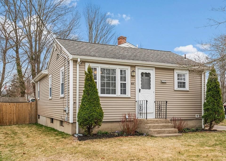 Due to Multiple Offers, Best and Final by 5/17, 4:00 pm. -- LOTS of NEW UPDATES, A CHARMING HOME, A MUST SEE! NEW Fresh Paint throughout, NEWER Heating System with Tankless Water Heater, and NEWER Oil Tank. NEW plush Carpets in Bedrooms; Master Bedroom has NEW Custom Closet Organizer; Kitchen refreshed with all NEW Stainless Steel Appliances and has Cherry Solid Wood Cabinets. Flows nicely for entertaining to Open-Concept Dining Room and Spacious Beamed Livingroom w/Built-in, both with Hardwood Flooring. Bathroom also Freshly Updated with NEW Tub, NEW Fixtures, and NEW Flooring. Exterior boasts NEWER Vinyl Siding and NEW Bulkhead too. Dry, Clean Basement, Great for Storage or more living space. Energy Efficient with New Insulation... All this and a Beautiful Yard to Enjoy, Complete with Storage Shed and 2nd Bonus 12x12 Larger Shed/Hobbyspace w/electric. Perfect Location, Quiet Side Street, yet close to Commuter Rail, Bus Terminal, Schools and Shopping. Virtual Tours Available!