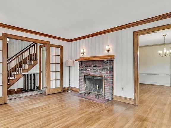Beautiful four-bedroom Colonial in highly sought-after Bellevue Hill neighborhood. Elegant foyer with natural woodwork and double French doors opens to spacious living room with gorgeous windows, crown molding, and large wood-burning brick fireplace with lovely mantle. Formal dining room features large built-in hutch and crown molding. Eat-in kitchen features updated cabinets and generous built-in pantry with wainscoting. First level also offers private home office and fully enclosed three-season porch. Second level offers central AC, full bath with vintage subway tile, and four bedrooms, with one featuring full walkout to potential private roof deck. Abundant natural light, original detail, and gleaming hardwood floors throughout. One-car detached garage. Beautiful mature tree in backyard, white picket fence, and entry portico add to this home’s curb appeal. Walk to commuter rail and to neighborhood shops and restaurants.