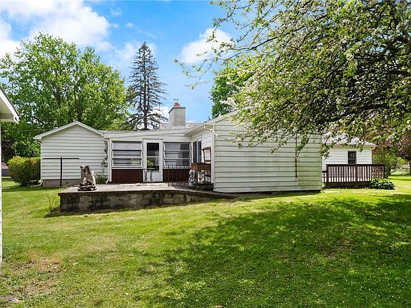 TWILIGHT OPEN HOUSE WEDNESDAY MAY 22nd FROM 5pm to 7pm. FABULOUS RANCH HOME ON A BEAUTIFUL ONE ACRE LOT IN THE VILLAGE OF PHELPS. This home boasts 4 bedrooms, 1 full bathroom, 1 half bathroom a wonderful open concept living space, a large great room for entertaining guests, a cozy wood stove and plenty of natural light. Walk out to the stone patio or the large deck to enjoy the amazing outdoor living options and there is even an electric hook up in the yard for an above ground pool on this exceptional piece of property. An oversized breezeway to the garage can easily be used as a three-season room. A circular driveway adds even more charm to this lovely home. Outdoor play set and freezer will be removed before closing.