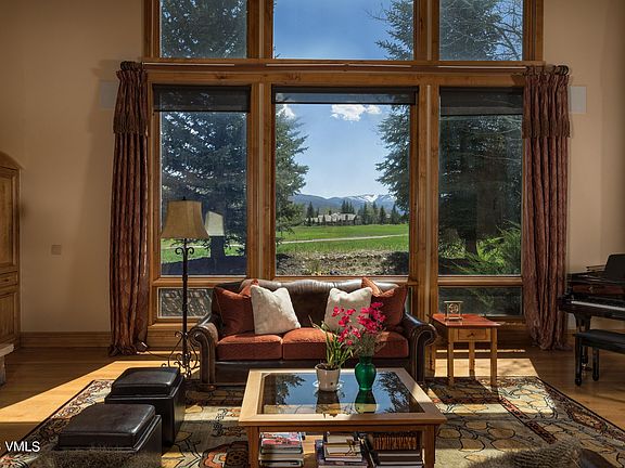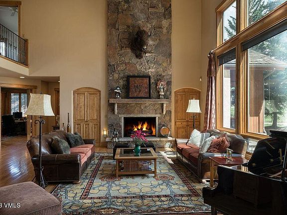 Located on a .wooded .41 ac homesite on the 16th tee of the renowned Country Club of the Rockies, this stunning 5690 sqft, 6b,6.5b offers an awesome floor plan w/ main level living. A gracious foyer leads you to a dramatic great room w' 28' vaulted beamed ceilings where banks of alder trimmed windows frame the golf course & views to Vail's Back Bowls. The great room & adjacent dining room are grand with stone FP & beamed ceilings. The chef's kitchen is fully equipped with only the best including 48'' Viking stove & Sub-Zero refrigerator, 2 Fisher & Paykel DW drawers plus an addd'l Bosch DW. The alder cabinets are gorgeous, accented by slab marble countertops that extend into an adjacent casual dining area with wine cooler.A large pantry, mud room w/ built ins & cubbies & a laundry room w/sink are nearby.The primary bedroom is magnificent w/soaring beamed ceilings, stone FP. a/c, expansive views across the golf course & access to the two flagstone patios & /hot tub. The elegant primary bath offers slab granite counters w/ double sinks & shower & huge closet w/ built ins. A cozy study has vaulted ceilings & Bahama Shutters. A beautiful staircase leads you to the upstairs where a balcony is framed by a magnificent rod iron railing. The upper level has three bedrooms, all w/vaulted ceilings & ensuite baths.The lower level is fun yet sophisticated with 12 '' coffered ceilings & an expansive recreation room w/ wet bar, pool table & built in entertainment center. Another bedroom w/bath, an exercise room w/sauna & bath complete this awesome lower level. A high efficiency Lochinvar boiler has recently been added to the home as well as a water softener & cop. A new roof will be added soon & is included in the price & complements the solar panels. The 3 car garage is oversized & there is a Huge crawl space. Enjoy all the amenities of Arrowhead including dial a ride, gated security, pickle ball, pool & endless hiking trail & Now Golf Carts are allowed for SF on the Course