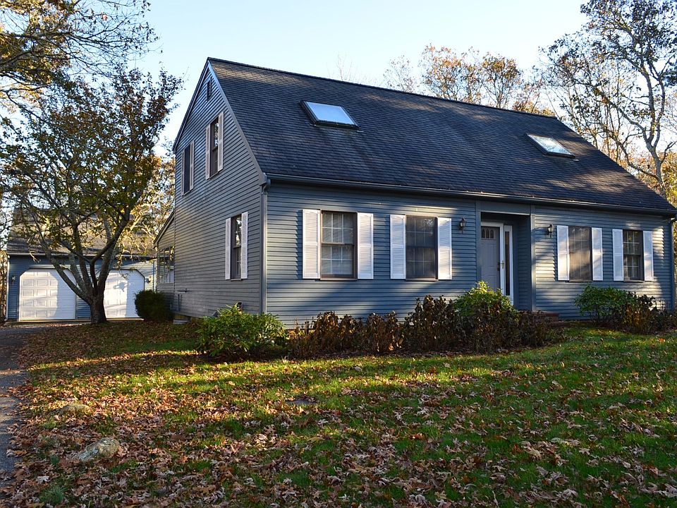 Oak Bluffs: Well maintained family residence situated in private community with protective covenants and tennis courts. Features over 3/4 of an acre, level landscaped, with acres of abutting conservation land. Large relaxing 3 season porch, den/study, upgraded kitchen, private dining room with bay window, spacious living room, another den that could be easily used for bedroom overflow, half bath and laundry room. Upstairs has the master suite with full bathroom, 2 more large bedrooms and another full bathroom. Wonderful detached 2-car garage with high ceilings and second floor storage.