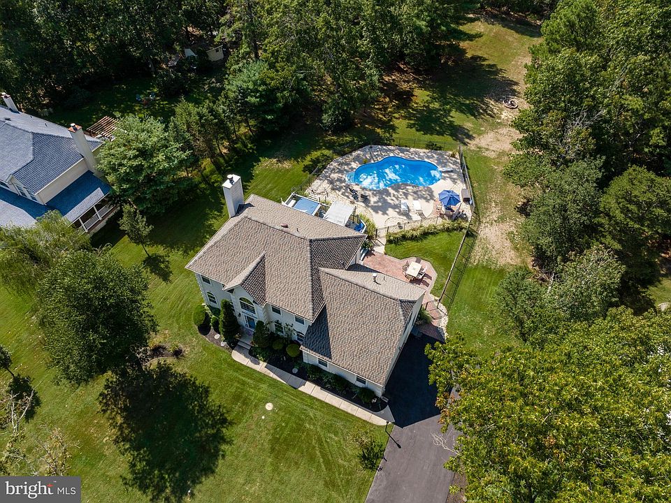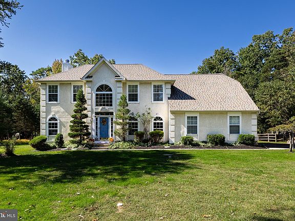 Welcome to your new home! This beautifully maintained 4 bedroom 2 and a half bath home sits on nearly an acre lot in the tranquil Waltham Woods neighborhood in Shamong, with optional 5th bedroom. Main floor features a two story entry with a formal dining room and living room to the right and left. The entry hall foyer, powder room, formal dining room and kitchen all have hardwood floors with carpeting through the rest of the home. The eat-in kitchen features an island with black granite counter tops, two pantries, stainless steel appliances including a gas stove, built-in wine refrigerator, and dining area with a view of the stunning backyard. The kitchen is open to the family room with a wood burning fireplace. Both rooms have sliding doors to the deck and patio in the backyard, where you will also find a hot tub and pool. The peaceful yard backs up to 14 acres of protected woods. Upstairs are four generous bedrooms, guest bath and primary ensuite with bonus room. The primary suite features a large bedroom, bathroom with double sinks, a jetted tub, and stall shower. There are two large closets and a bonus room currently being used as an office. The home has a two car garage with an additional workshop space. Entering the home from the garage places you in a large laundry/mud room with doors to the backyard and kitchen. There is a fully finished basement with new flooring, a bar, optional 5th bedroom, and storage area. Additionally, the septic system is new (2022) and the heat, air conditioner and roof were are all replaced within the past 5 years. The home is already set up for either gas or electric appliances and heat, as well as a switch box for a generator. You will definitely want to see all this move-in ready home has to offer.