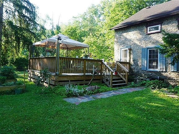OPEN HOUSE FOR SAT 7/21 CANCELLED WE ARE UNDER CONTRACT! Welcome to your own piece of paradise! This beautiful farm house offers 2+ acres of seclusion and greenery! Enjoy your morning coffee on the deck, while overlooking the creek. Many new mechanics throughout while maintaining the integrity of this homes original charm including exposed beams, stone and original barn wood floors. What was once a two family home has been converted to a single family. It can easily be converted back to a multi family, or used as an in law suite- The possibilities are endless.