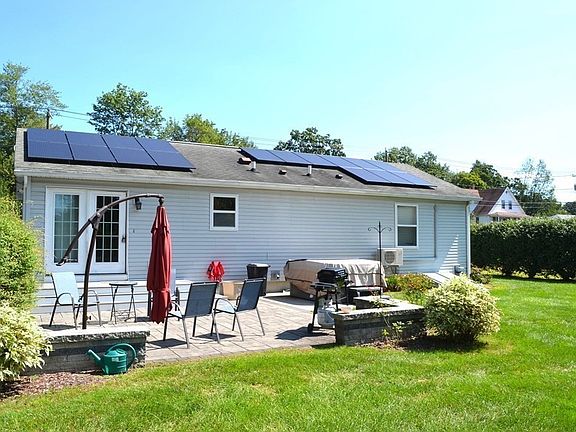 Welcome home. This modern ranch has so much to offer to today's buyers. This is a recently remodeled home offering three bedrooms, two full baths and room to roam. Almost all the flooring is high end engineered flooring or tile. The yard is meticulously maintained and has wonderful professional landscaping that is the envy of the neighborhood. Everything is easy to maintain and looks fantastic. The yard offers space for yard games and a wonderful deck and patio to relax on and just watch the days go by. There is a large storage shed for all your lawn and garden equipment. The basement is as dry as a bone and could easily be converted into expanded living space. There is a pellet stove located in the basement to help with the Winter heating bills. The home also has its own solar panels which provide almost all the electricity used. The current owner pays small bills a couple months in the Winter, but the rest of the year the bills are covered by the panels.