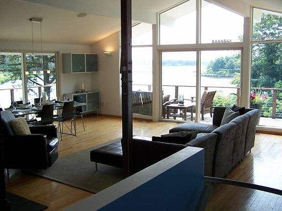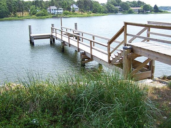 Welcome to Paradise! Enjoy direct waterfront living from Contemporary w/70ft dock on saltwater pond accessing Vineyard Sound.Tastefully decorated open first floor includes stainless steel/granite kitchen, dining area, living rm, two beds and full bath. Walls adorned w/glass frame stunning waterviews.Walk out lower level features entertainment room w/wetbar, laundry, full bath, and two bedrms.Double lot,waterside wrap around deck,coastal landscaping, stone patio, and hot tub complete this jewel!