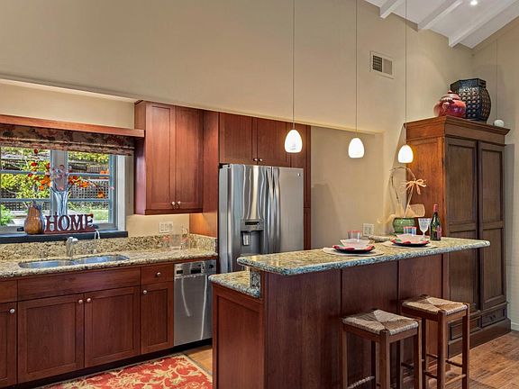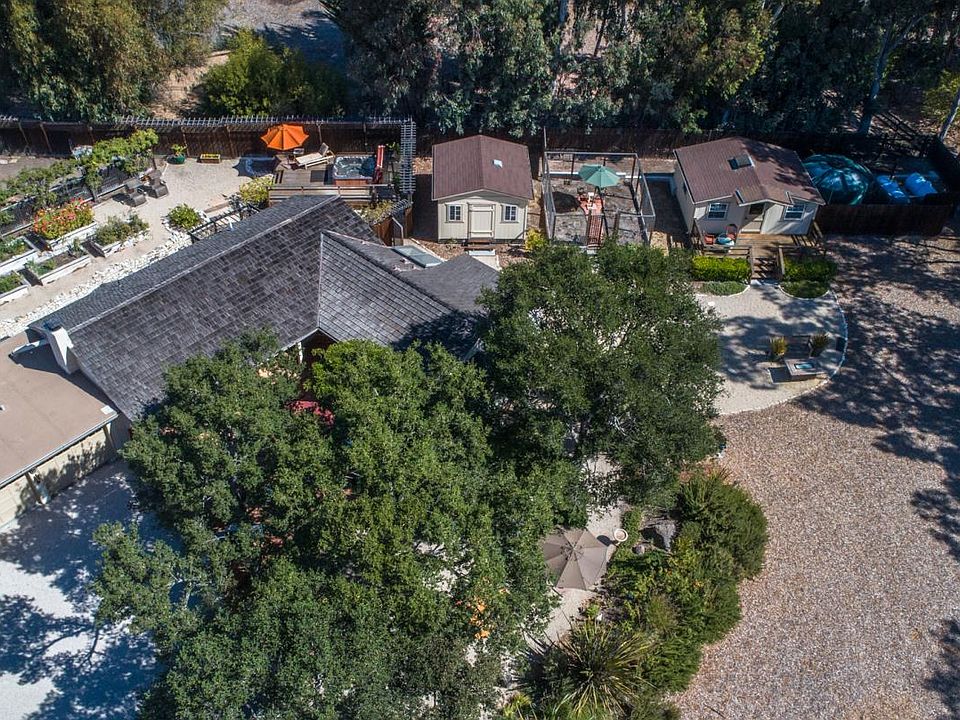 Garland Views from Majestic Miramonte! Bring the outside in and the inside out. This gorgeous gated and fully fenced Miramonte property was designed to take full advantage of the valley outdoor life. Privacy abounds with a refreshing mix of majestic Oak trees, beautiful gardens, and a large entertainers tile patio. Wonderful interior upgrades to this 2 bed 1.5 bath include a remodeled kitchen, stainless appliances, breakfast bar, open beam-vaulted ceilings, spacious remodeled bathroom with full length skylight over the impressive walk-in shower. Sliding doors open to the extensive patio allowing for large gatherings with views of picturesque Garland Ranch. Raised planter beds and separate rose garden offers the gardener a space to easily grow favorite flowers or vegetables. A detached 325 sf Office, Artist Studio with sun drenched deck allows for versatile use and creative inspiration. As the day winds down, enjoy stargazing from the hot tub and outdoor shower.