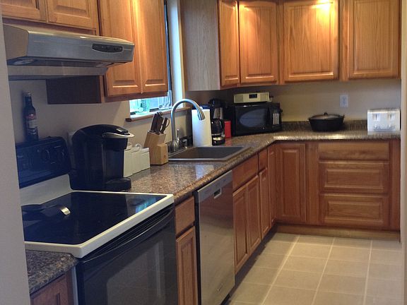 Great condo price reduced drastically to sell fast! Found our dream house but we have to sell our lovely condo quickly to buy the new house! Newly remodeled kitchen, huge living room with fireplace, 2 bedrooms with cathedral ceilings and skylight, balcony off sliding glass doors in master bedroom. Large deck off dining area overlooking very pretty backyard. 1.5 baths. Detached Garage, Rural setting, walking distance to residential beach and boat launch on Lake Quannipaug.