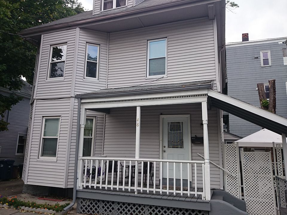 BRIGHTON COLONIAL - 5 bedroom, 3 full bath Colonial in great location. Eat-in kitchen w/newly installed cabinets, dining room w/hardwood floor, living room w/hardwood floor. Four bedrooms on second floor w/wood floors, fifth bedroom on third floor w/private full bath, w/w carpet. Vinyl siding, Central A/C, replacement windows, all apliances to stay, full basement for storage, two off street parking spots. CLOSING - not before 5/31 - tenant.