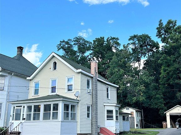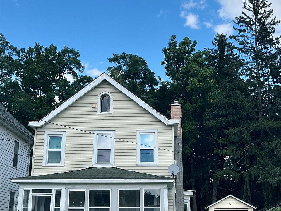 Enter this charming two story home through the sunny enclosed porch. The first floor has a cozy living room and a big kitchen and breakfast bar with a large dining area. Off the dining space is a combined mudroom and laundry and a door to the backyard. Down a short hall off the kitchen is a lovely en suite bedroom. Upstairs there are two more generous bedrooms and a full bath. The yard is very deep and is ideal for gardening and al fresco dining. In addition to the detached garage, the yard has a building which needs work to bring it back to life for a studio or workshop. This home has great bones but needs your polish to make it the star of this beautiful neighborhood. Close to the Rondout waterfront with dining and shopping and just a few minutes to the Midtown Arts and Stockade Districts.