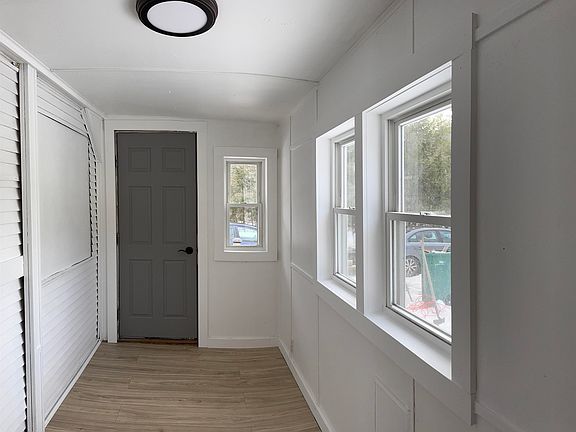 Beautiful, renovated turn-key ready home for less than $75,000!! Located in Pine View, a nice, small community of manufactured homes on a quiet dead end street. This is a newly renovated two bedroom home with a bonus room, mudroom, and separate laundry room, and new flooring throughout. The larger bedroom has a separate entrance. The home comes completely applianced, including stainless steel refrigerator, sink and range, washer and dryer, and newer furnace. Renovations were tastefully done, resulting in a home that is beautiful, affordable, and easy to maintain. Natural lighting and open concept make for a welcoming atmosphere. The primary bedroom is located at the back of the home, overlooking the level yard which backs to a wooded tree line. Across Moose Lane are more woods, creating a secluded, quiet neighborhood. This home offers excellent off street parking right outside your front door. Exterior siding has been well maintained, portions recently painted. Located in the Chamberlin School area. Less than 10 minutes to The Ridge--your one stop shop for groceries, retail stores, and dining. Easy access to highways, making this a great commuter location. The home has City water and City sewer. The home is a great buy in today's market and has one of the lowest park rents around at only $465 a month. Great opportunity to lower your expenses! Come see this lovely home for under 75 K.