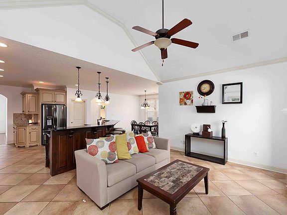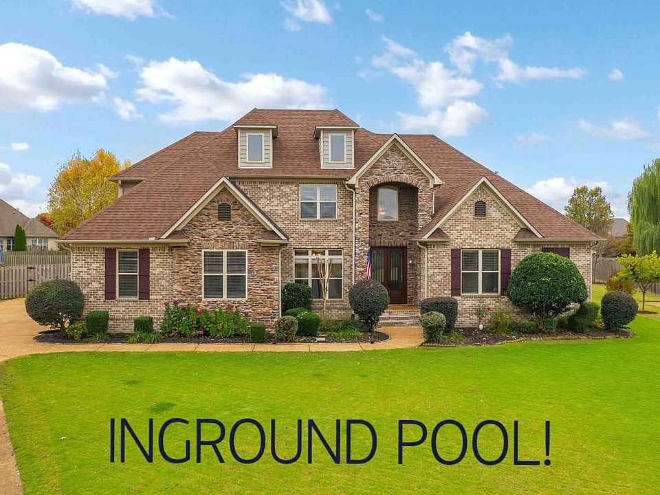 4 bedroom 4 bath home with inground salt water pool! 2 bedrooms and 2 baths are downstairs. 2 year old roof. Brand new floors in living area. Salt water pool includes robotic Dolphin pool cleaner and pool cover. Large open kitchen featuring solid surface counter tops, double oven, breakfast bar, walk in pantry, breakfast area & gathering room with fireplace. Spacious great room with 11 ft. coffered ceiling & fireplace. Upstairs are 2 additional bedrooms, rec. room/media room, office (or toy room) & 2 full baths. 3 car garage. Large fenced backyard on a cove lot. Watch football on the covered back patio! Awesome home!