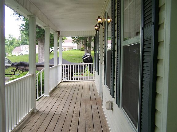 Charming 2 story with wrap around porch. Has hardwood and tile flooring with carpet in bedrooms. Kitchen has upgraded cabinetry with space for eat in table and large pantry plus formal dining area. There is additional room can be used as office or library on main. Master bedroom has trey ceiling an walk-in closet. 2 heating and cooling systems. full unfinished basement plumbed for full bath. setting on nice shaded lot that backs up to field. .