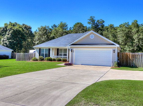 Welcome Home! Beautiful 3 Bdrm/ 2 full bath customized one story home with many upgrades. Hardwood laminate flooring in all living areas, new ceramic tile installed and crown molding. Expansive kitchen with eat-in breakfast area which leads to covered grilling patio. Large master suite and bath with his & hers vanities, soaking tub, and walk-in closet. Great room with fireplace. Back deck and covered patio for your outdoor living overlooking large beautiful landscaped, private fenced backyard. Front yard landscaped with irrigation system. Rocking chair front porch. Double garage with separate parking pad. Great location with easy access to I-20, Aiken, and downtown areas.