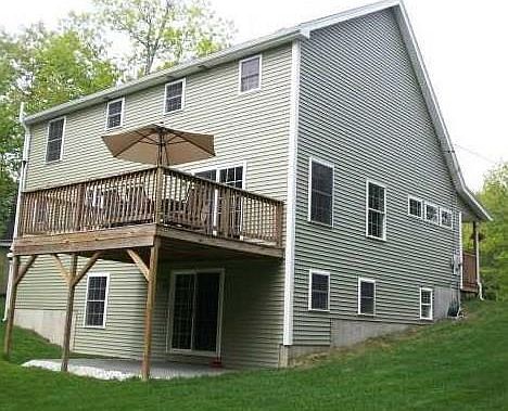 Beautiful Home just minutes from town and the Maine Turnpike. This Contemp Cape was built in 2006 and has hardwood throughout with 3 BR's and 2.5 BA's. 2540 sf, Beautiful kitchen with large island and stainless appliances. Finished basement with lg family room,wood stove and walk out to patio area under deck, big deck over looks 5 gorgeous wooded acres, Tons of privacy in a private gated community. Shared association beach and waterfront access to Notched pond. 2 Car garage, Shed & more...Priced to sell !
