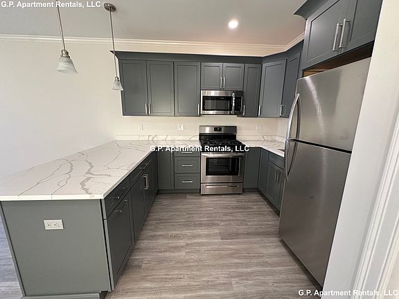 New Construction with Parking Available June 1st! Grand Brand New One Bedroom with 1 car off-street parking included. Gorgeous eat-in kitchen with gas stove, microwave and refrigerator. Stunning peninsula to enjoy meals with family and friends. Large open concept living area, ample natural light. Spacious bedroom with closets. Full bathroom. Shared coin-op laundry in building. No utilities included. Owner pays for cold/water sewer only. Tenant responsible for heat (gas), hot water (gas), electricity and WIFI.