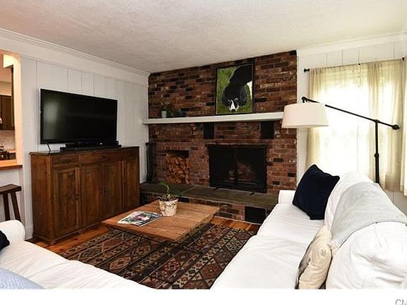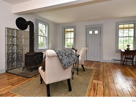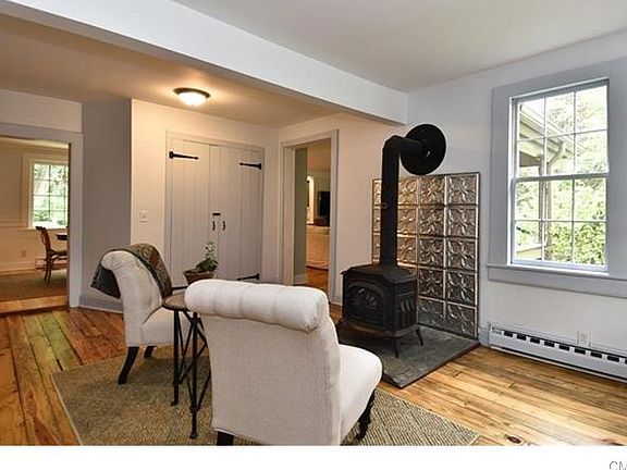 Stroll to Idylic Main street from this Circa 1910 Farmhouse updated w/today's modern conveniences! Lush Landscapes, Stone walls, and a Bluestone circular drive greet you from the relaxing front porch. Welcoming Great room w/original wide plank pine floors, remodeled 1/2 bath and coat closet. Dining room with Picture window, Sliding Barn door to the Laundry & mudroom area! Family room w/ whitewashed brick fireplace & open concept Eat in Kitchen w/ SS Viking stove, Liebherr Fridge and Blanco Farm sink w/butcher block counter & Carrera marble backsplash. French door slider to custom deck with seating for entertaining. Level Private Fenced backyard w/Raised Garden w/designated waterline, Storage shed and Fire pit for Gatherings. Upper level large primary bedroom w/full bath, 2 spacious closets and recessed lighting, 2 additional bedrooms on upper level with hardwood floors, storage closets and updated hall bath. Efficient gas furnace, A/C, Town water and sewer for easy living. Move right in enjoy this wonderful home!